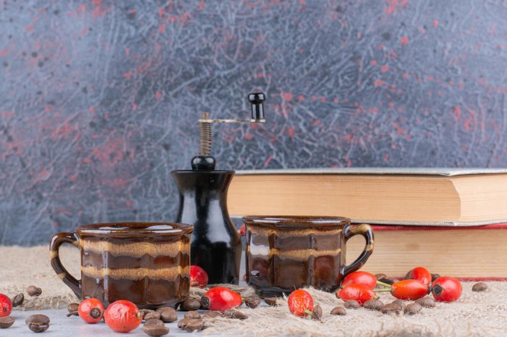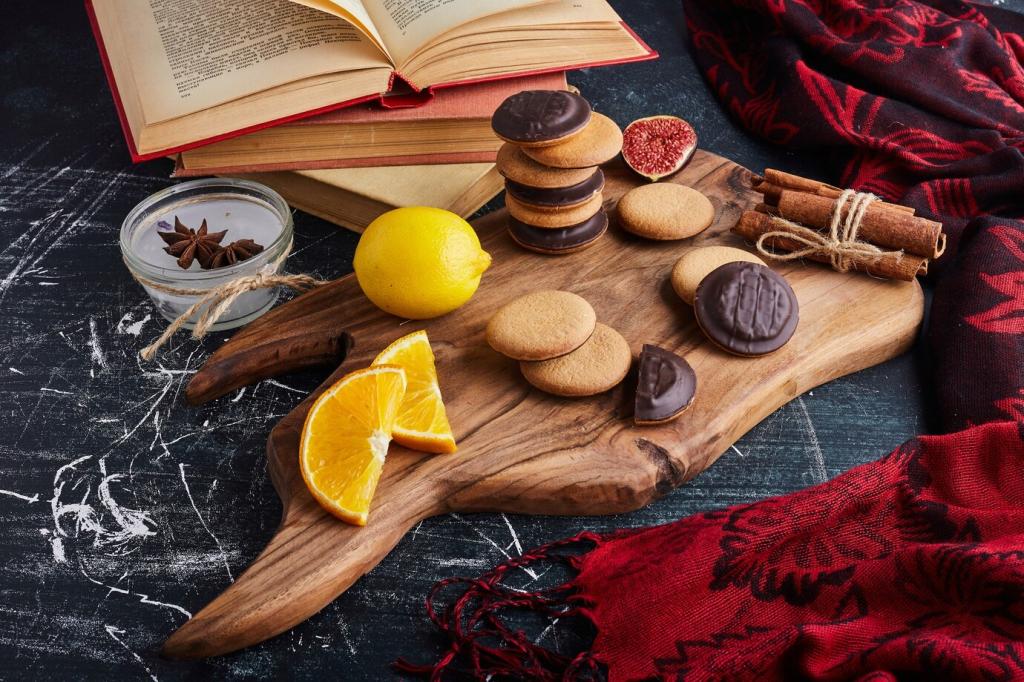 Gerüche verankern Erinnerungen tiefer als Bilder. Wenn wir Szenen nachkochen, holen wir Emotionen an den Tisch: kindliche Sommer, verregnete Nachmittage, flackernde Kerzen. Erzähle uns, welches Buch dir einmal buchstäblich den Hunger geweckt hat.